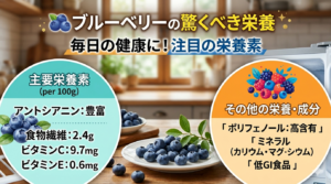 この記事では、ブルーベリーに含まれる主な栄養や、どのような魅力があるのかを、わかりやすくご紹介します。