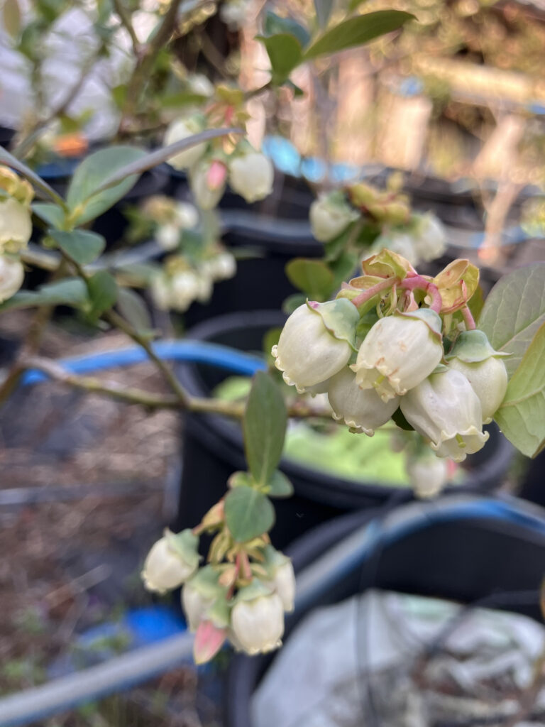 ブルーベリーの花が咲きました——クマバチが来てくれる農園の春 農園に出るたび、少...